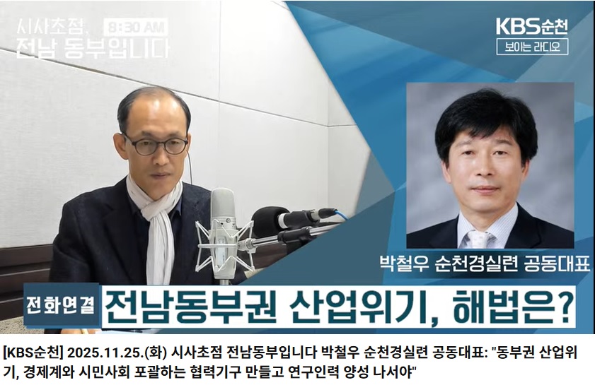 11¿ù 25ÀÏ(È) 8½Ã 30ºÐ, ¼øÃµKBS 1¶óµð¿À <½Ã»çÃÊÁ¡ Àü³²µ¿ºÎÀÔ´Ï´Ù>¿¡ ¼øÃµ°æ½Ç·Ã ¹Úö¿ì °øµ¿´ëÇ¥°¡ 'Àü³²µ¿ºÎ±Ç »ê¾÷À§±â, ÇØ¹ýÀº?'À̶ó´Â ÁÖÁ¦·Î ÀÎÅͺ並 ÇÏ¿´½À´Ï´Ù.