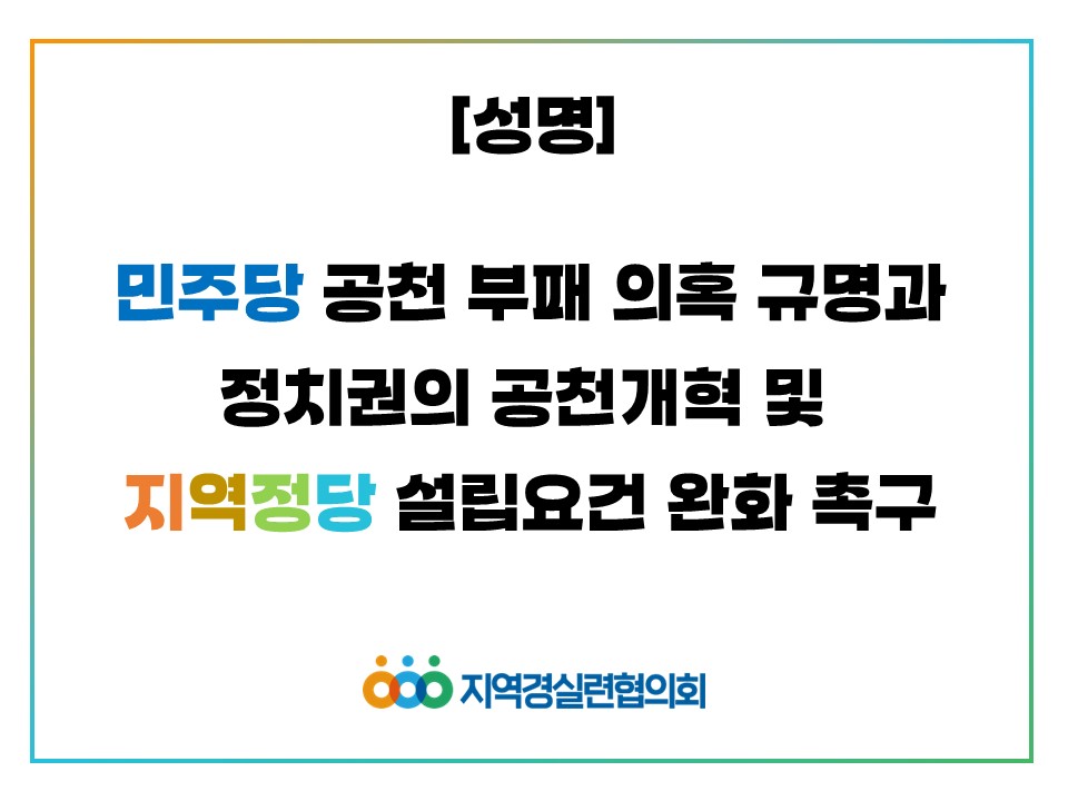 °á±¹, °Å´ë ¾ç´çÀÇ °øÃµ±ÇÀÌ Áß¾Ó´ç°ú Áö¿ª ±¹È¸ÀÇ¿ø(Áö¿ªÀ§¿øÀå)¿¡°Ô ÁýÁߵǸé, Áö¿ªÀϲÛÀ» »Ì´Â Áö¹æ¼±°Å´Â Áß¾ÓÁ¤Ä¡ÀÇ ´ë¸®ÀüÀ¸·Î Àü¶ôÇÑ´Ù. °´°üÀû ÁöÇ¥¿¡ ÀÇÇÑ Åõ¸íÇÑ °æ¼± ´ë½Å¿¡ ¹Ð½Ç °øÃµ, ÀÎÀçÀÇ ¿ª·®º¸´Ù ´ç¿¡ ´ëÇÑ Ãæ¼ºµµ³ª °èÆÄ¸¦ °øÃµ±âÁØÀ¸·Î »ï´Â ´ç¼º(ÓÚàõ) Á᫐ Æò°¡, Áö¹æÀÇ¿øÀ» ÀÚ½ÅÀÇ ¡®¼±°Å¿îµ¿¿ø¡¯Ã³·³ ºÎ¸®´Â °øÃµ Ä«¸£ÅÚ µîÀ¸·Î Áö¹æÀÚÄ¡¿Í Áö¹æÁ¤Ä¡´Â ÈÑ¼ÕµÉ ¼ö¹Û¿¡ ¾ø´Ù. ÀÌ¿¡ °¢ Á¤´çÀº °øÃµ±âÁØ, ¼±Á¤¹æ½Ä, °øÃµ °á°ú ¹× »çÀ¯(ȸÀÇ·Ï µî)¸¦ °ø°³ÇÏ°í °øÃµ°ü¸®À§¿øÈ¸ÀÇ ¡®¿ÜºÎ ÀÎ»ç °ú¹Ý Âü¿©¡¯¸¦ Àǹ«ÈÇÏ¿©, °øÃµ »çÀ¯ÈÀÇ ÆóÇØ¸¦ ¸·¾Æ¾ß ÇÑ´Ù. ±×¸®°í ±Ùº»ÀûÀ¸·Î´Â ¡®Áö¹æ¼±°Å¿¡¸¸ Ã⸶Çϴ¡¯ Áö¿ª Á¤´çÀÇ ¼³¸³À» ¹ýÁ¦ÈÇÏ¿©, Áö¹æÁ¤Ä¡°¡ Áß¾ÓÁ¤Ä¡¿¡ ¿¹¼ÓµÇ´Â ±¸Á¶¸¦ ŸÆÄÇÏ´Â Á¤Ä¡°³ÇõÀ» ÃßÁøÇÒ ¶§´Ù. °æ½Ç·Ã°ú Áö¿ª°æ½Ç·ÃÇùÀÇȸ´Â ´õºÒ¾î¹ÎÁÖ´çÀÇ °øÃµ ºÎÆÐ ÀÇȤ Áø»ó±Ô¸íÀ» Ã˱¸Çϸç, ¿©¾ß Á¤Ä¡±ÇÀÌ ¡®°øÃµÀÇ »çÀ¯È¡¯ Â÷´ÜÀ» À§ÇÑ °øÃµ°³Çõ°ú Áö¹æºÐ±ÇȽô뿡 ¸ÂÃç ¡®Áö¿ª Á¤´ç ¼³¸³¿ä°Ç¡¯ ¿Ïȸ¦ À§ÇÑ Á¤Ä¡°³ÇõÀ» ÃßÁøÇϵµ·Ï Àü±¹ ½Ã¹Î»çȸ¿Í ¿¬´ëÇÏ¿© °·ÂÈ÷ ´ëÀÀÇØ ³ª°¥ °ÍÀÌ´Ù. ³¡.
